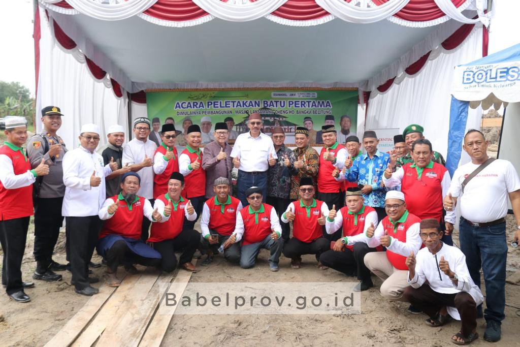 CC Online – PANGKALAN BARU – Penjabat (Pj) Gubernur Kepulauan Bangka Belitung (Kep. Babel) Ridwan Djamaluddin bersama Bupati Bangka Tengah Algafry Rahman dan Wakil Bupati Bangka Barat Bong Ming Ming hadir dalam peletakan batu pertama pembangunan Masjid Laksamana Cheng Ho Bangka Belitung, Jumat (7/10/2022).